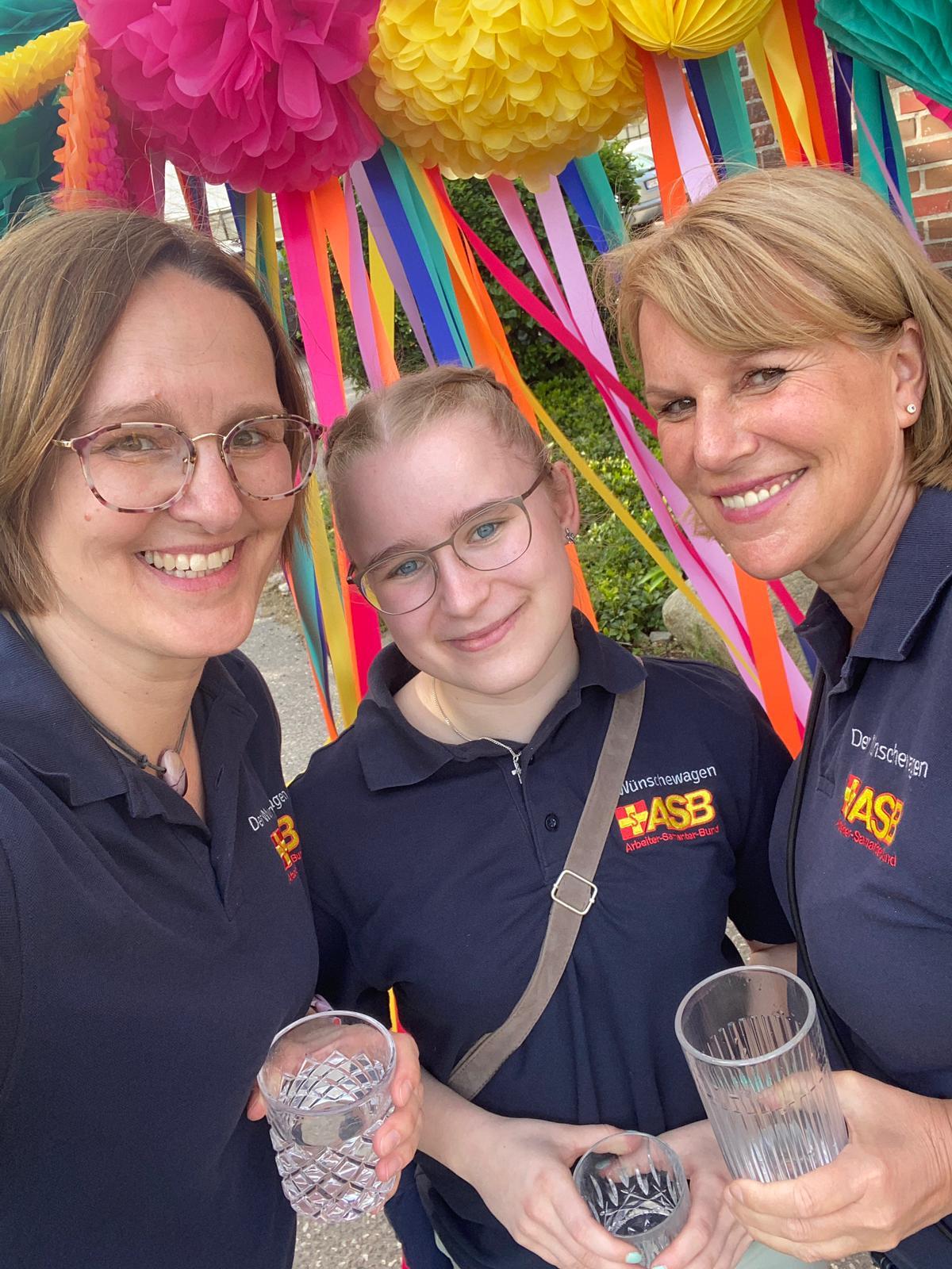 Nur ein kleiner Moment, dann werden Nicole, die den Wünschewagen fährt und Lara als Beifahrerin (die Namensgleichheit zu Braut und Enkelin ist zufällig) Ohrenzeuginnen, als wir hinten im Wagen beginnen zu singen. „Marmor, Stein und Eisen bricht, aber unsere Liebe nicht“, wie passend, für den heutigen Anlass.