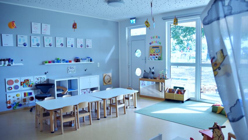 Unsere ruhig gelegene Kita Knöpfchen zeichnet sich durch ein großes Außengelände und besonders helle und freundliche Räumlichkeiten aus. Als betriebsnahe Kita der Firma LMT Group haben wir den Schwerpunkt Naturwissenschaft und Technik gewählt.